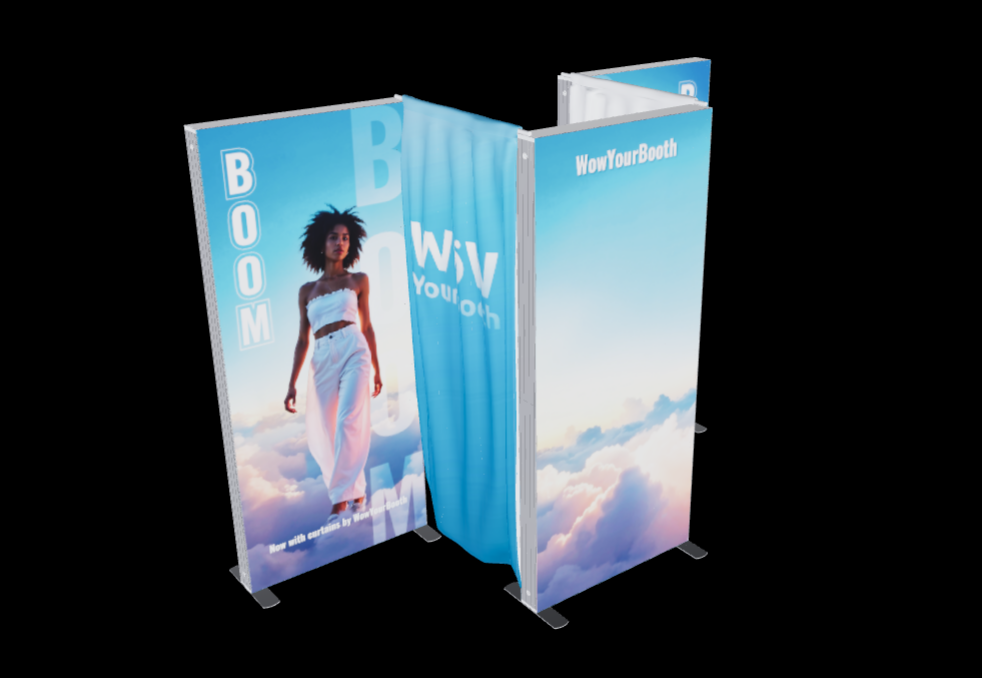 Elevate your trade show presence with the Sego Lightbox - Configuration 1 with Privacy Curtains, a stunning backlit display system that combines bold visuals with a semi-private setup. This modular display includes six SEG dye-sublimated backlit fabric graphics sized 3.3' x 7.4', supported by three durable frames and six stabilizing feet. The sleek design incorporates two curtain tubes and printed pole-pocket curtains, offering a stylish way to create a private space within your booth. With easy portability thanks to three travel bags and plug-and-play setup, it’s ideal for events. Add the optional monitor mount for dynamic media integration—for an even more engaging trade show experience.