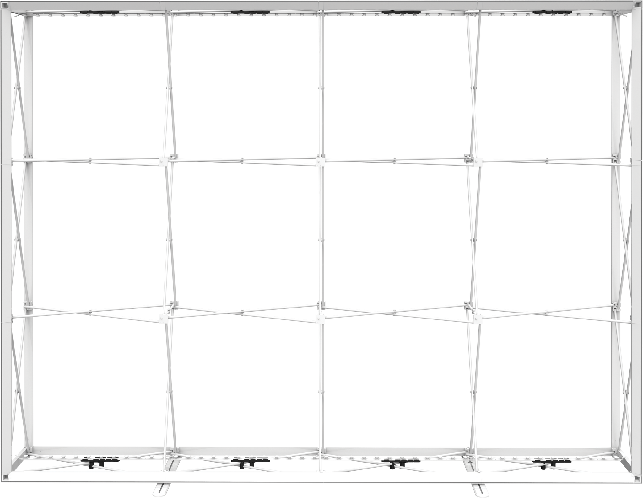 The Embrace™ 10ft full height (4 Quad x 3 Quad) backlit push-fit fabric display is a sleek illuminated collapsible display. The Backlit Embrace makes it simple to make a big impact in minutes with easy-to-attach patent-pending LED lighting and a push-fit backlit graphic that attaches to channel bars around the perimeter of the frame. Simply attach lights to the collapsible frame and insert the graphic into the channel bars for an impactful illuminated display solution! Graphics available as single or double-sided with endcaps. No tools are required for assembly. A protective molded case for storage and transport are included. Option available to purchase frame, LED lights and case only..