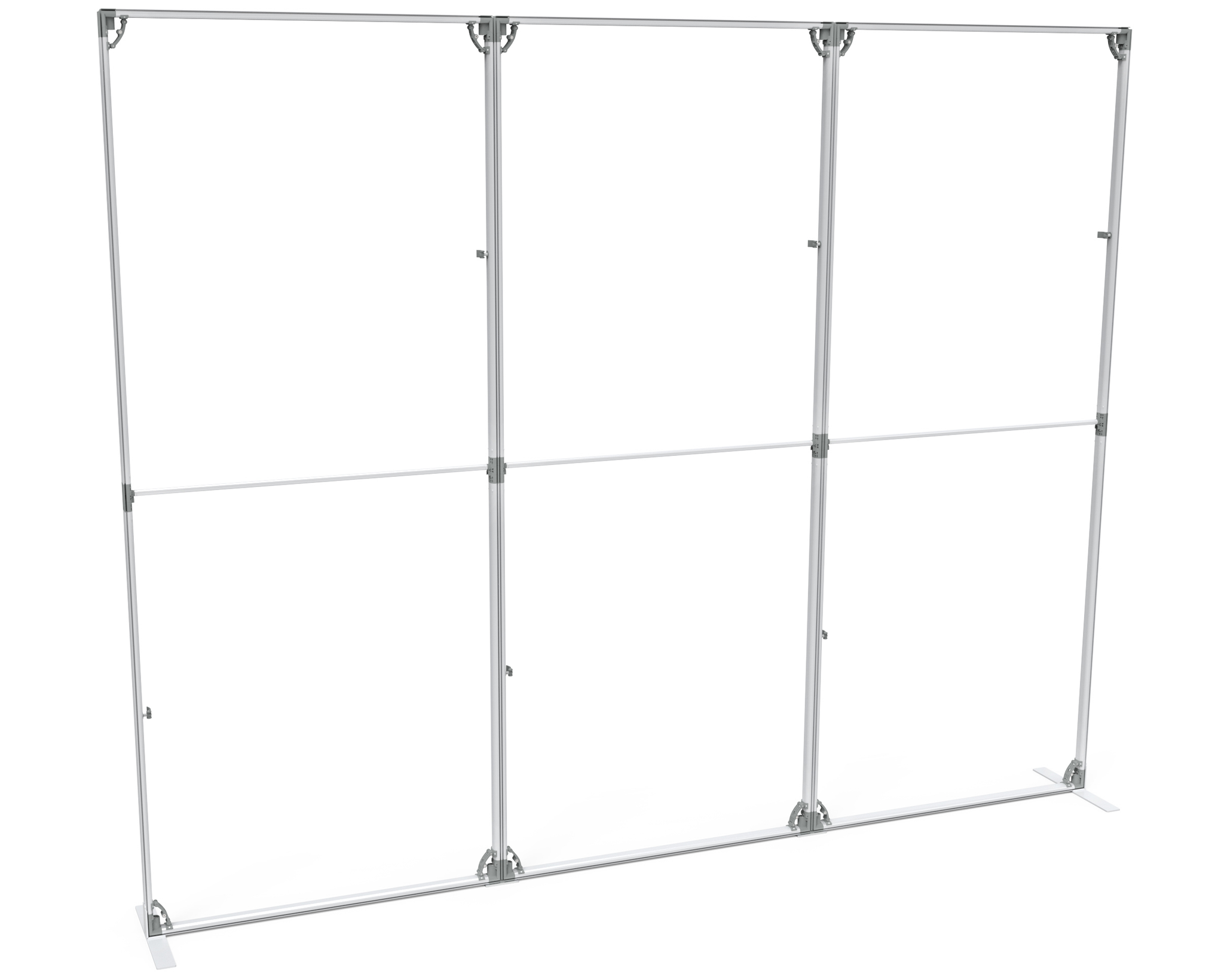 - Three collapsible, slim SEG frames, that together, create a 10ft wide, 8ft high backwall