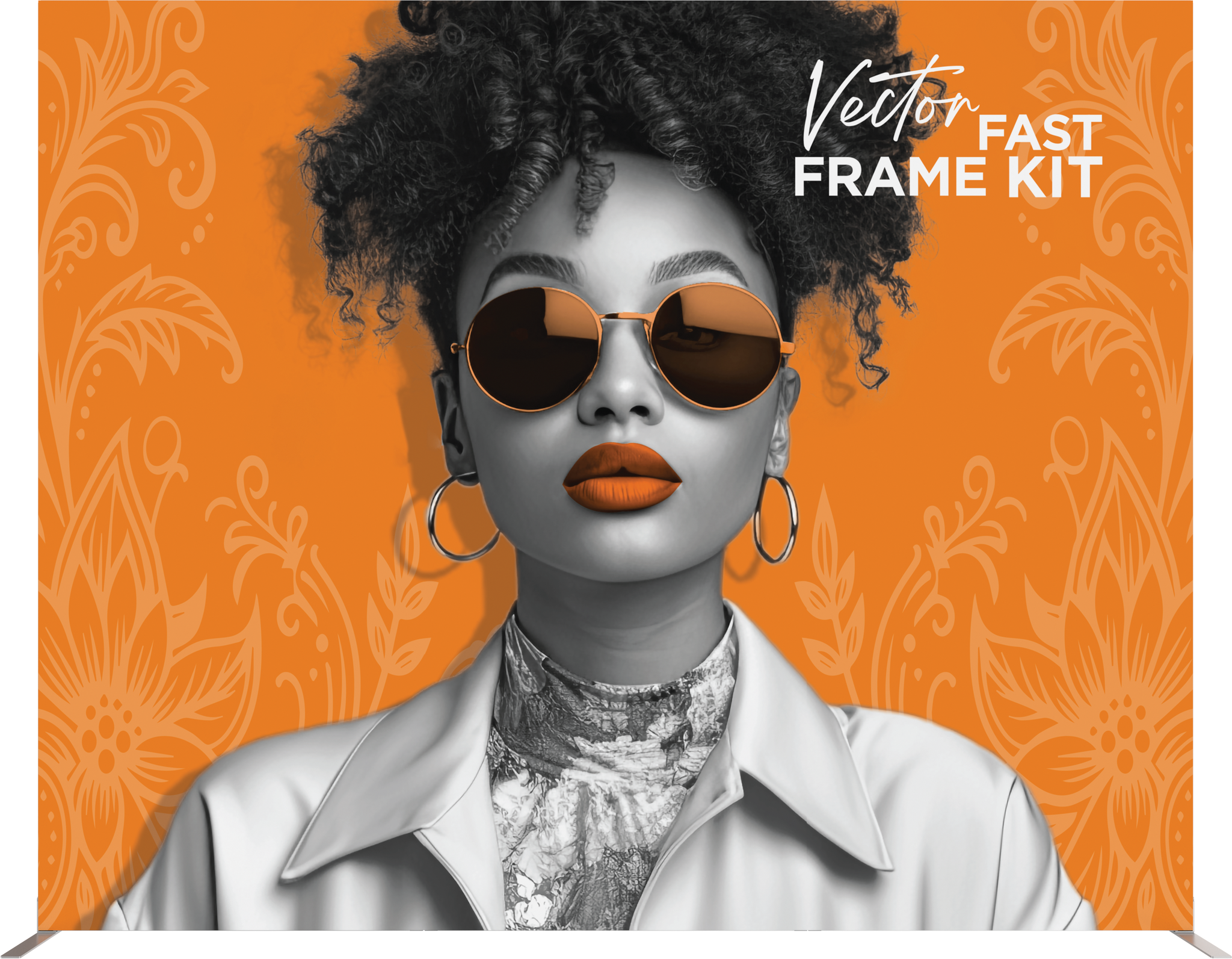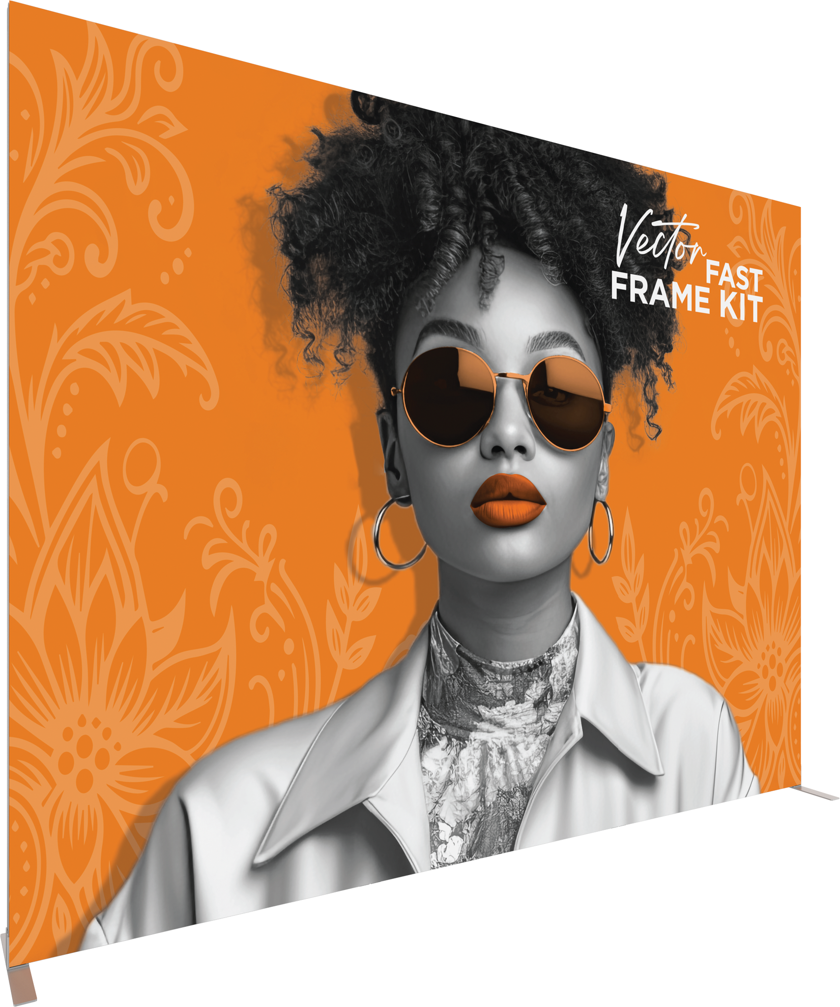 Vector Fast Frame™ 10ft Kit is an innovative and cost effective collapsible SEG backwall kit that assembles in minutes. Three slim collapsible SEG frames holds one seamless, easy-to-change push-fit SEG fabric graphic, which is easily applied to the front and back. Front and back graphics are easy to change out to deliver new messages. Lightweight and ultra slim, the Fast Frame is toolless and can be constructed in minutes. It is also highly portable, making travel and storage easy.