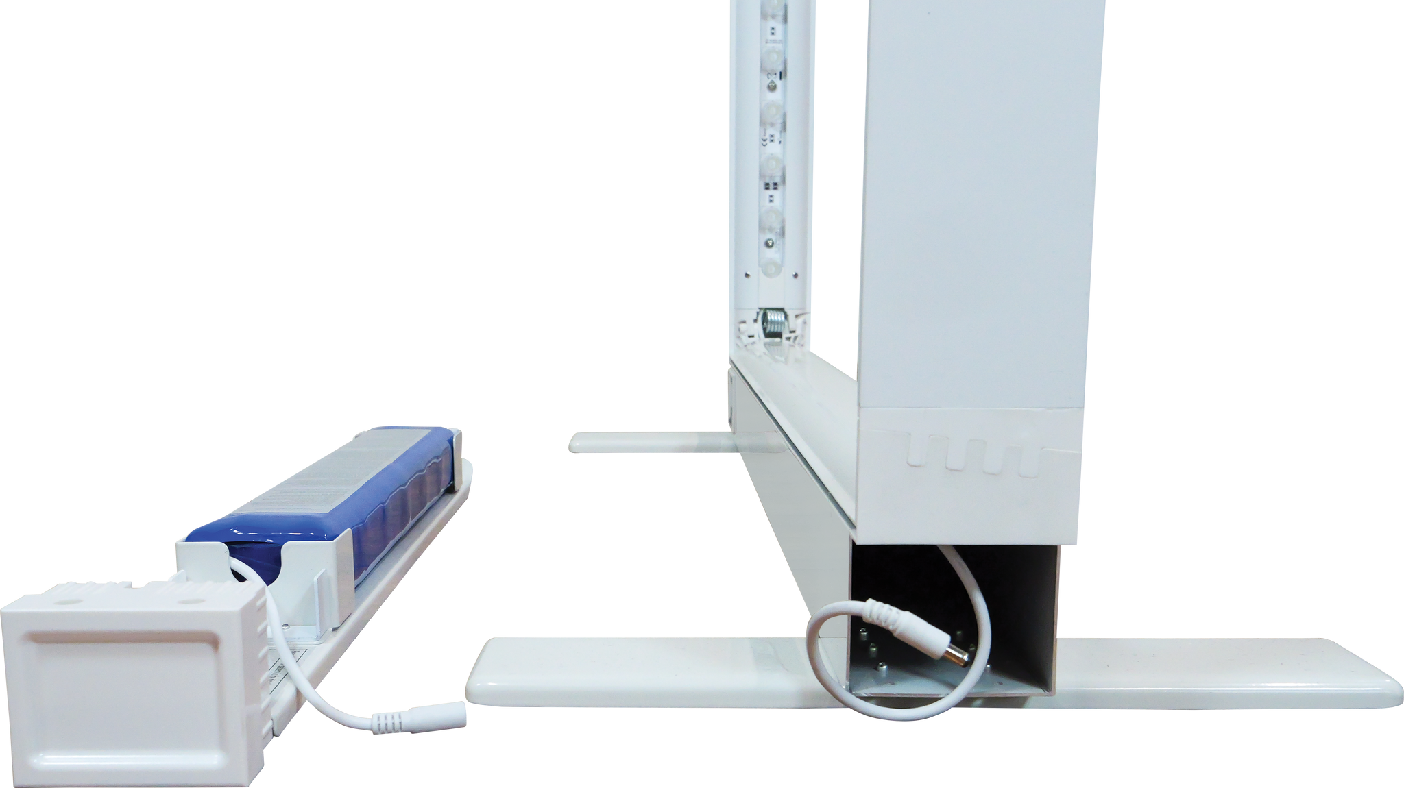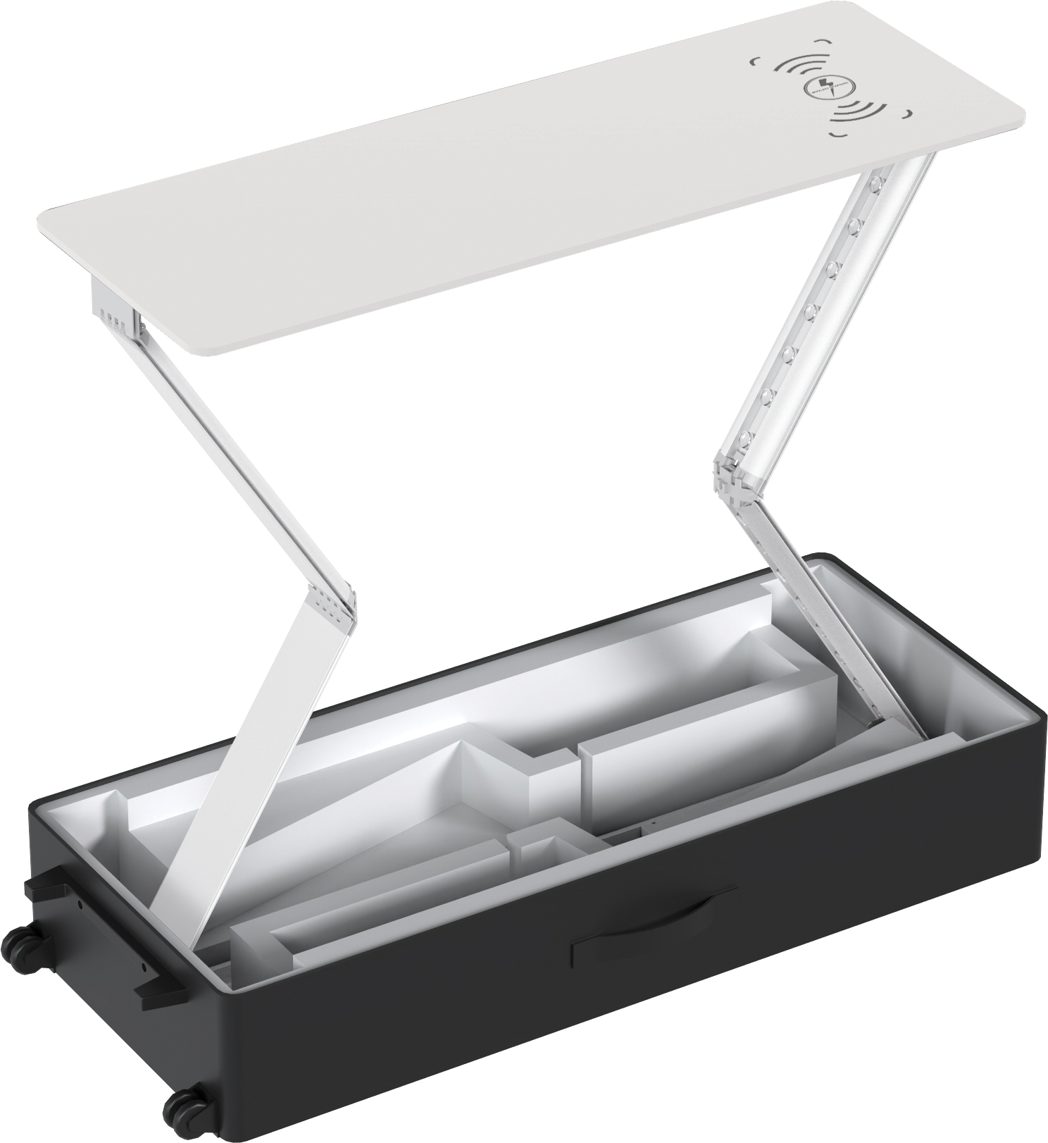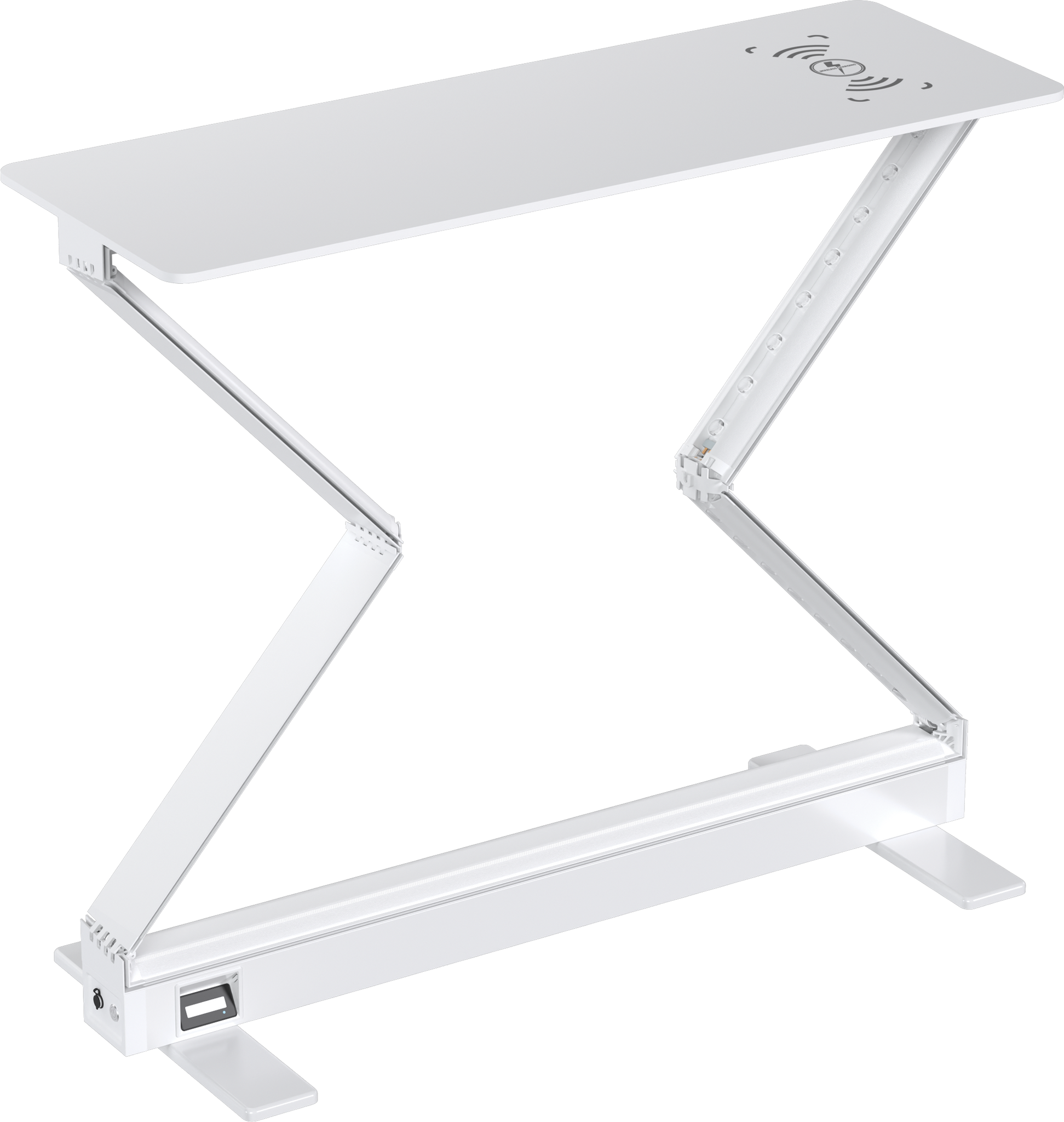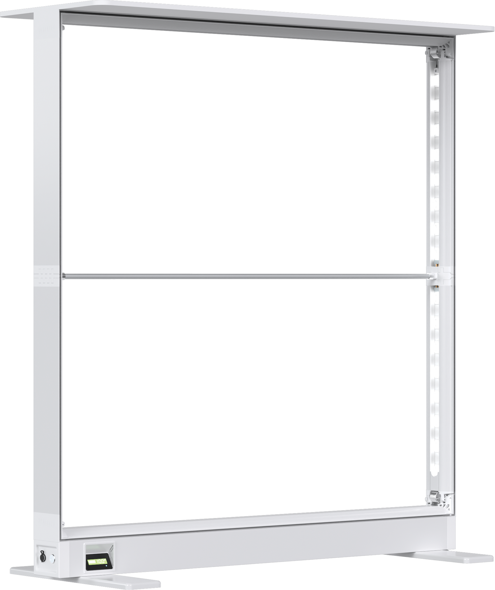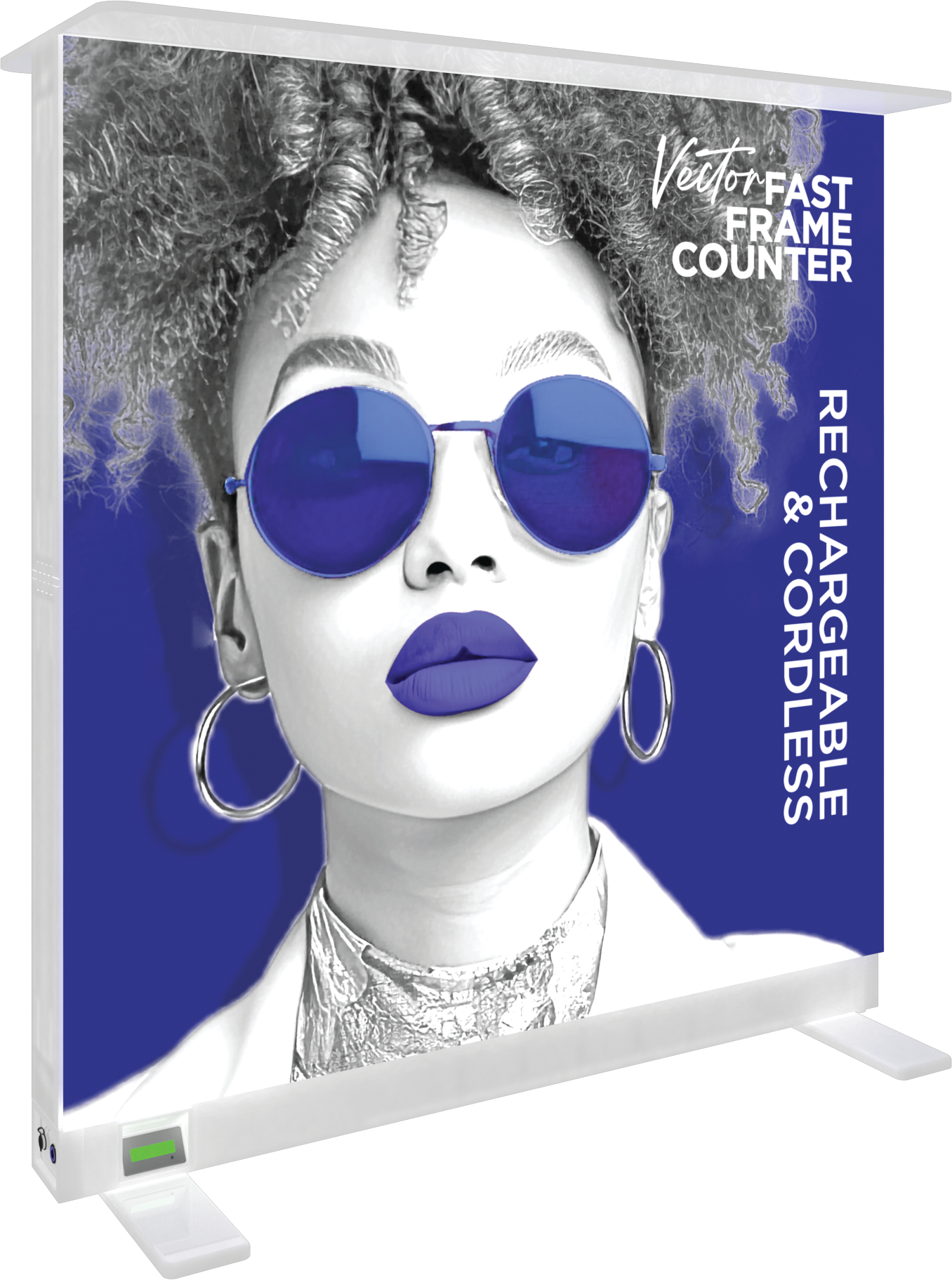 Vector Fast Frame™ Rechargeable Light Box Counter is battery-operated and offers a cord-free design that provides up to 15 hours of runtime on a single charge. The collapsible counter is slim at 3.35" and has pre-attached LED lights on the left and right sides. The battery can be charged in or outside of the unit and contains circuitry to prevent overcharging. The countertop includes a built-in mobile phone wireless charging pad. This simple counter holds seamless, push-fit silicone edge graphics (SEG), which are easily applied to the front and back. Graphics are easily swapped out to deliver new messages so you can use the counter again and again! Vector Fast Frame Rechargeable Light Box Counter features a white top, is lightweight, portable, and requires no tools, so assembly is a breeze. It packs down small, making travel and storage simple. GROUND SHIPMENT ONLY FOR UNITS WITH BATTERY INSTALLED.